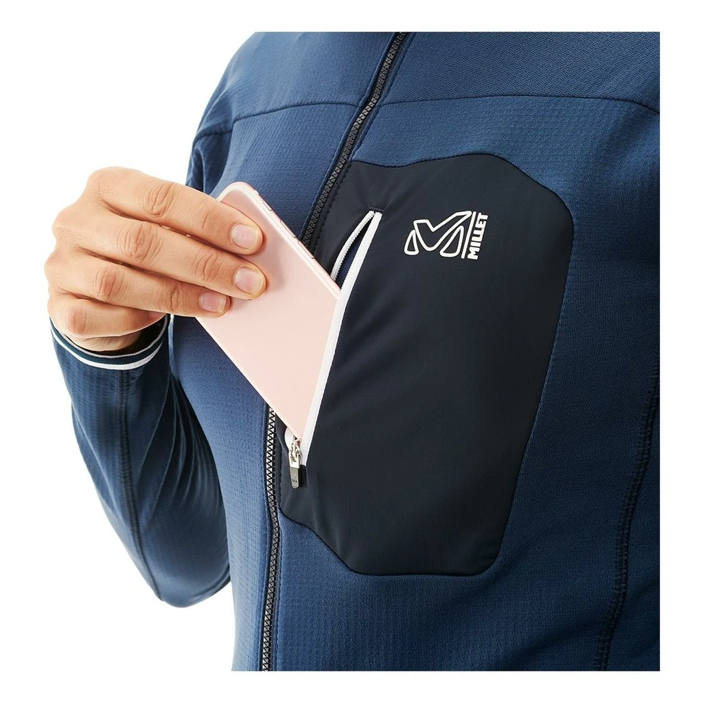 La coupe est ajustée sur l’ensemble du corps, légèrement resserré sur le bas du vêtement, ce qui permet d’être plus performant dans l’effort. Cette veste est fabriquée à partir de matières à faible impact environnemental (plus de 40% du produit).