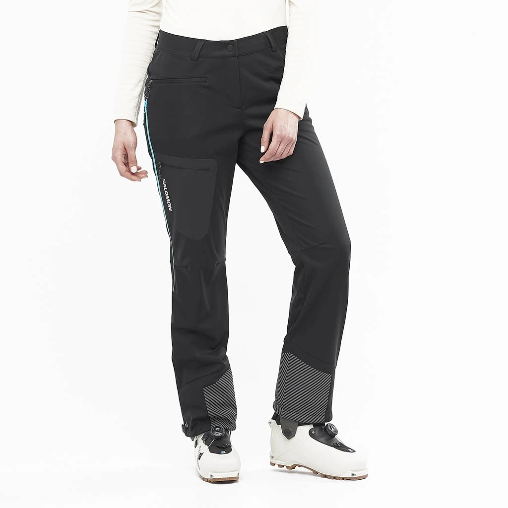 Le pantalon coupe-vent de ski de randonnĂ©e pour femme Mountain Gore-Tex Softshell Pant par SALOMON est un modèle lĂ©ger mais rĂ©sistant face aux faibles prĂ©cipitations pour vous accompagner dans vos activitĂ©s Ă niveau intermĂ©diaire Ă confirmĂ© en pleine nature.Â