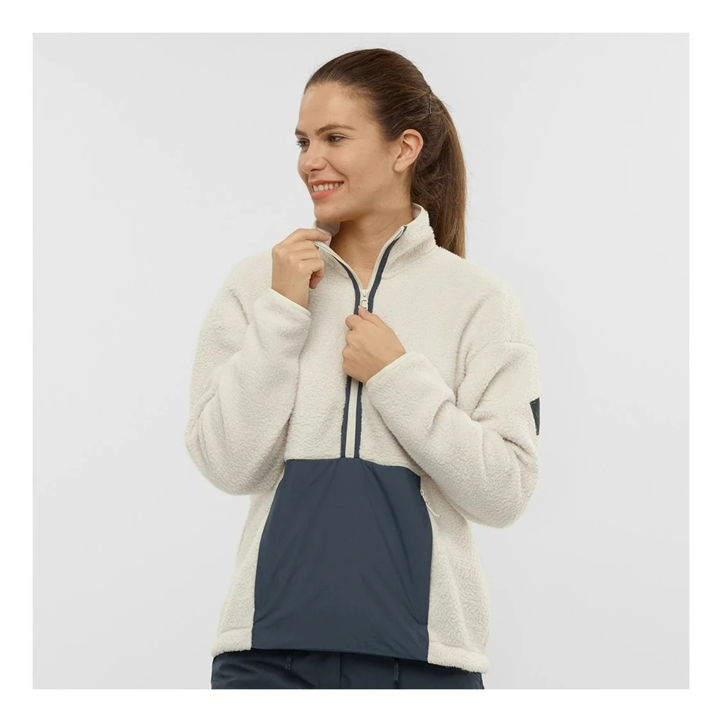 La veste de randonnée pour femme Salomon Snowshelter Teddy Half Zip est idéale pour vos randonnées hivernales modérées.